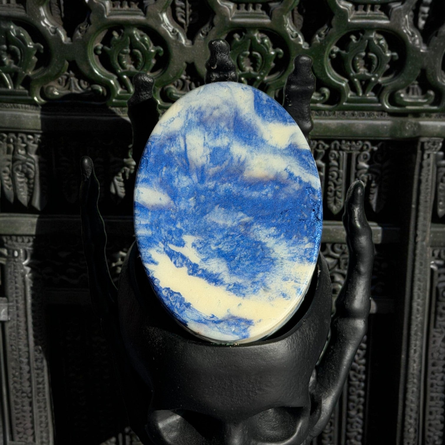 Ingredients: a luxurious blend of saponified organic/non-gmo butter & oils (Babassu/Mango, Shea, Cocoa, Olive, Palm, Coconut, Canola, Castor, Sunflower, Rice Bran), natural sodium lactate, skinsafe/cosmetic mica, ph-thalate free fragrance