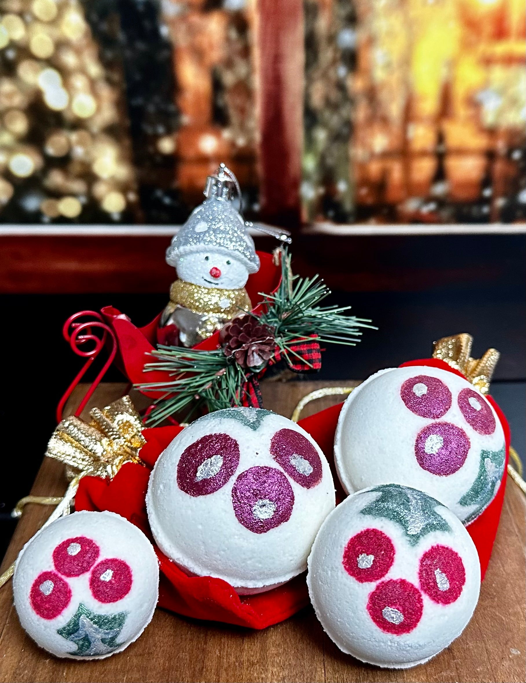 "Berry Spice Bath Fizzy" is made of food-grade baking soda & citric acid, organic goat milk powder, Vit D, avocado oil, aloe vera, witch hazel, skin safe mica.